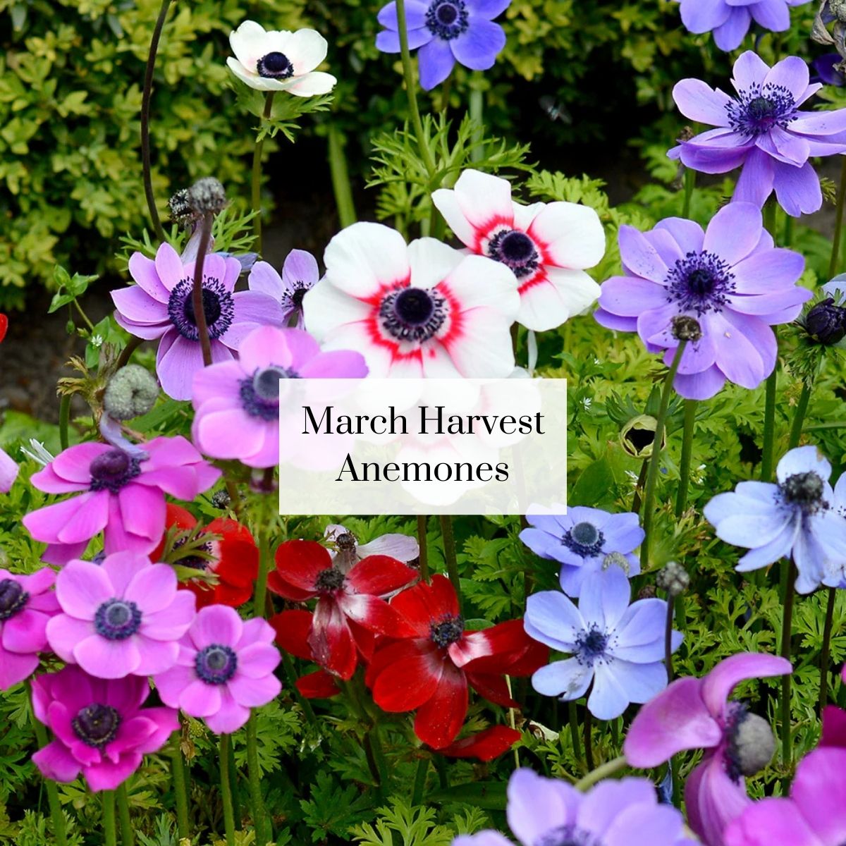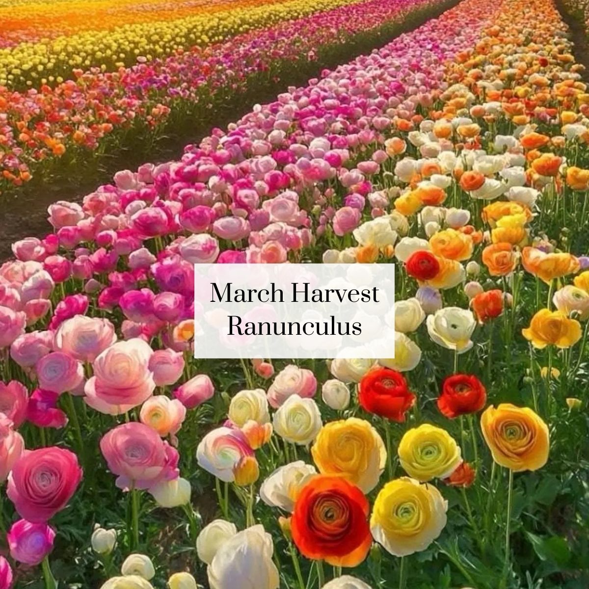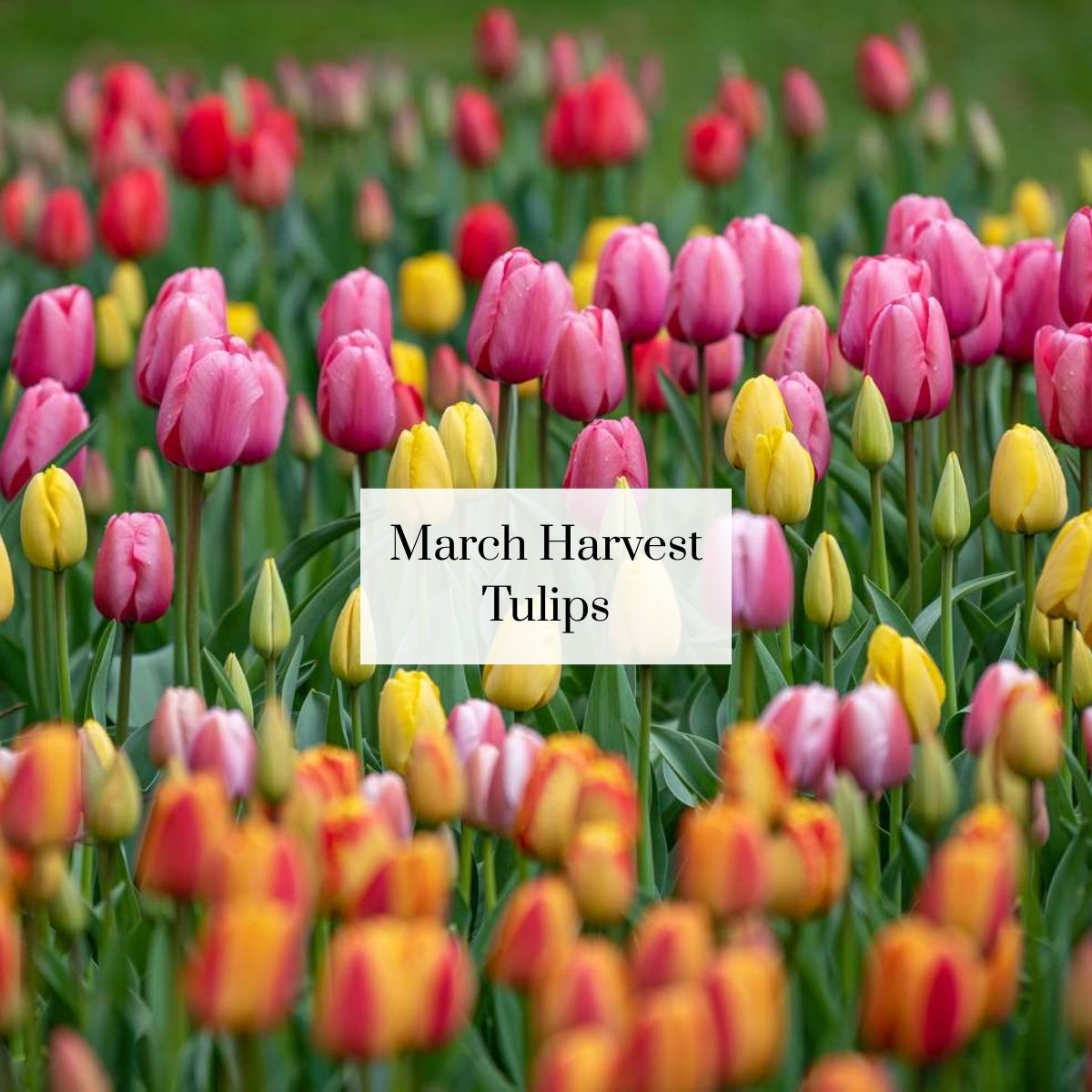 March Harvest at Thomas Family Farm: Tulips, Calendula, Anemone, Ranunculus, Freesia, Sweet William, Statice, Godetia, Agrostemma, Leucadendron, Rosemary, Eucalyptus, Blooming Tree Branches & Curly Willow.